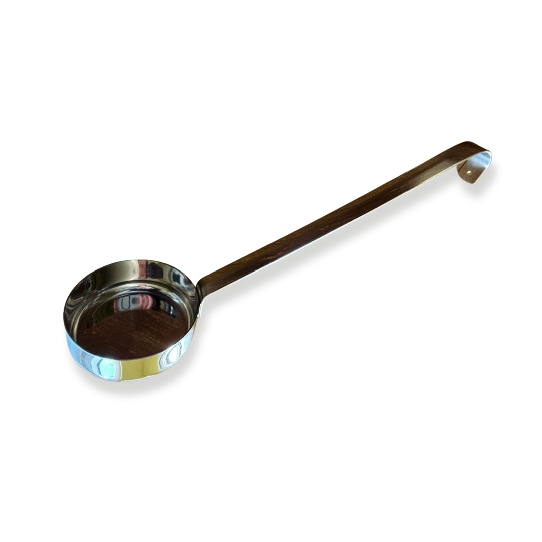 A kanál alsó része teljesen lapos — ennek köszönhetően amikor a szószt a tésztára öntöd, a kanál rögtön érintkezik a pizzatésztával, majd finom, körkörös mozdulatokkal könnyedén eloszlatja a szószt az egész felületen. Ez a fajta elosztás sokkal egyenletesebb, mint amit egy szokásos merőkanál vagy fakanál tudna biztosítani, hiszen a lapos aljú kialakítás miatt a szósz nem cseppekben kerül a tésztára, hanem folyamatos rétegben — így a pizza minden szeletében azonos ízvilágot kapsz.